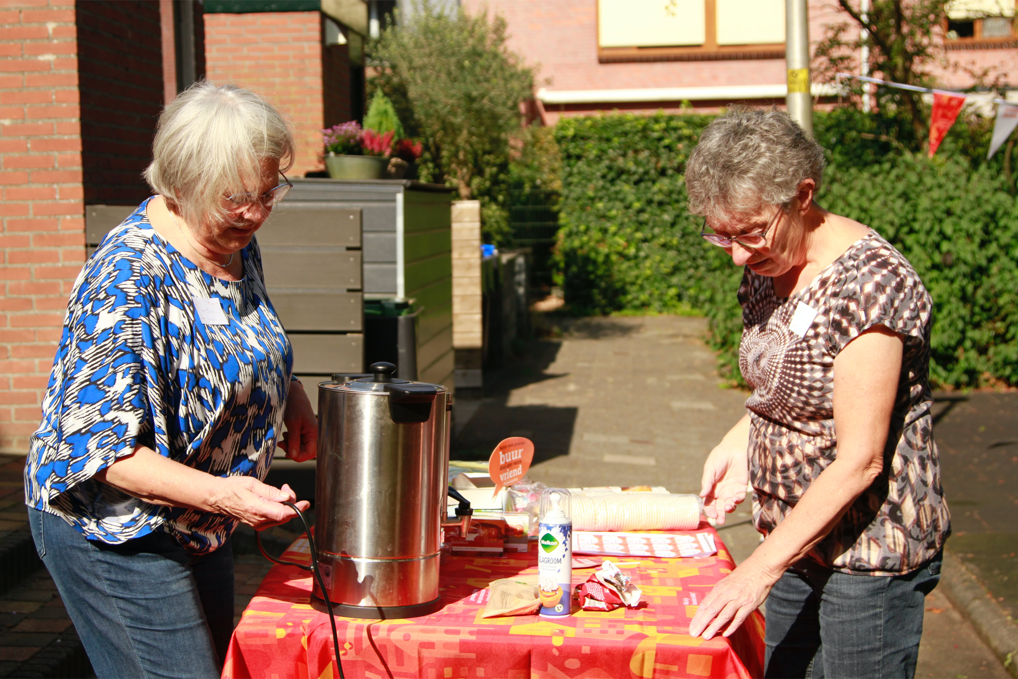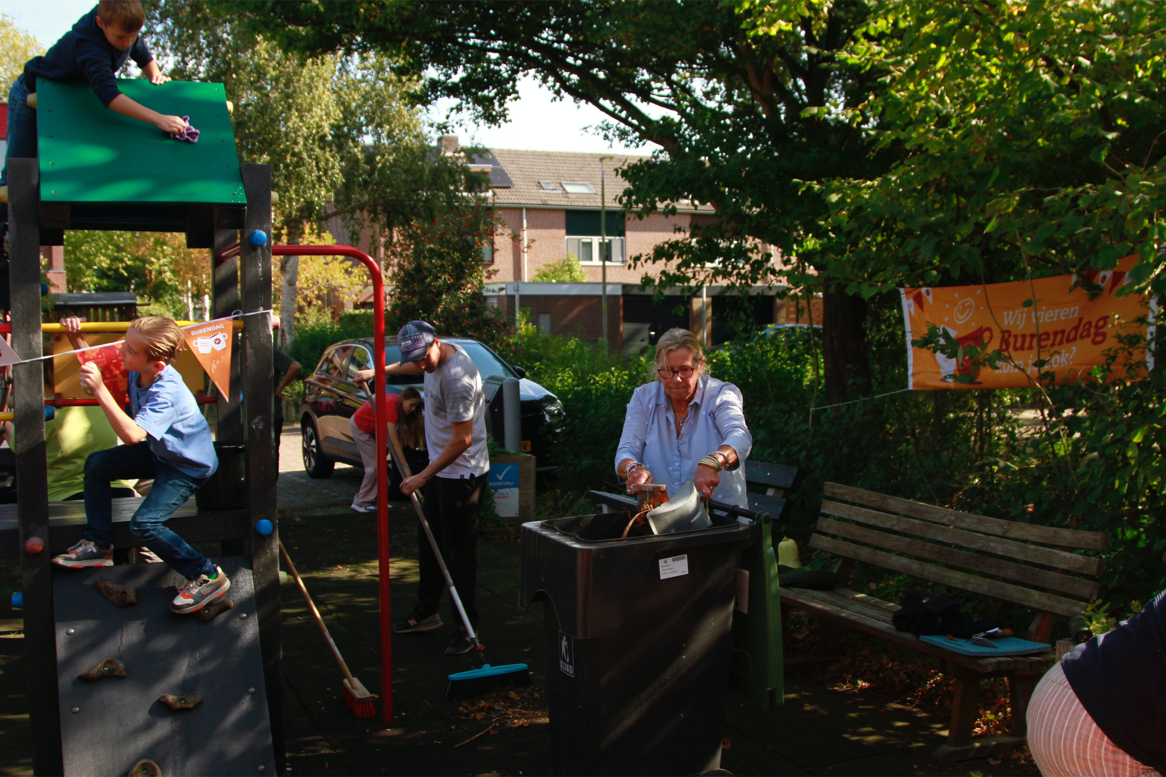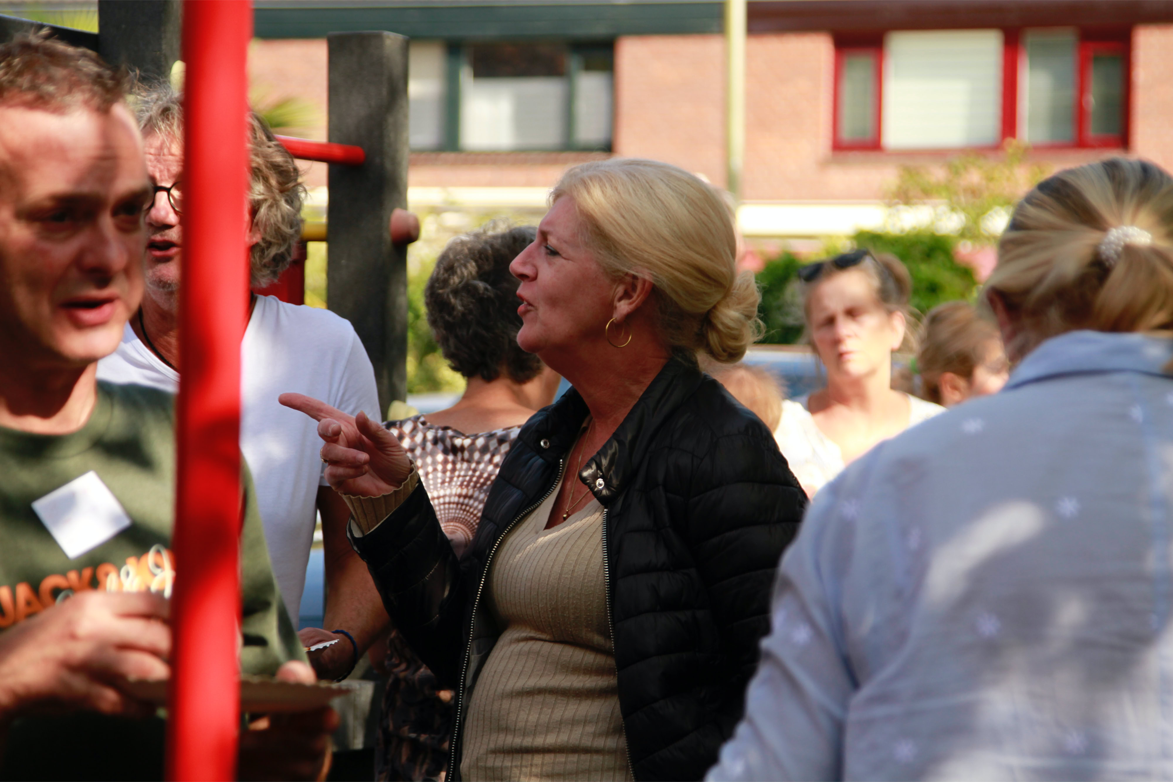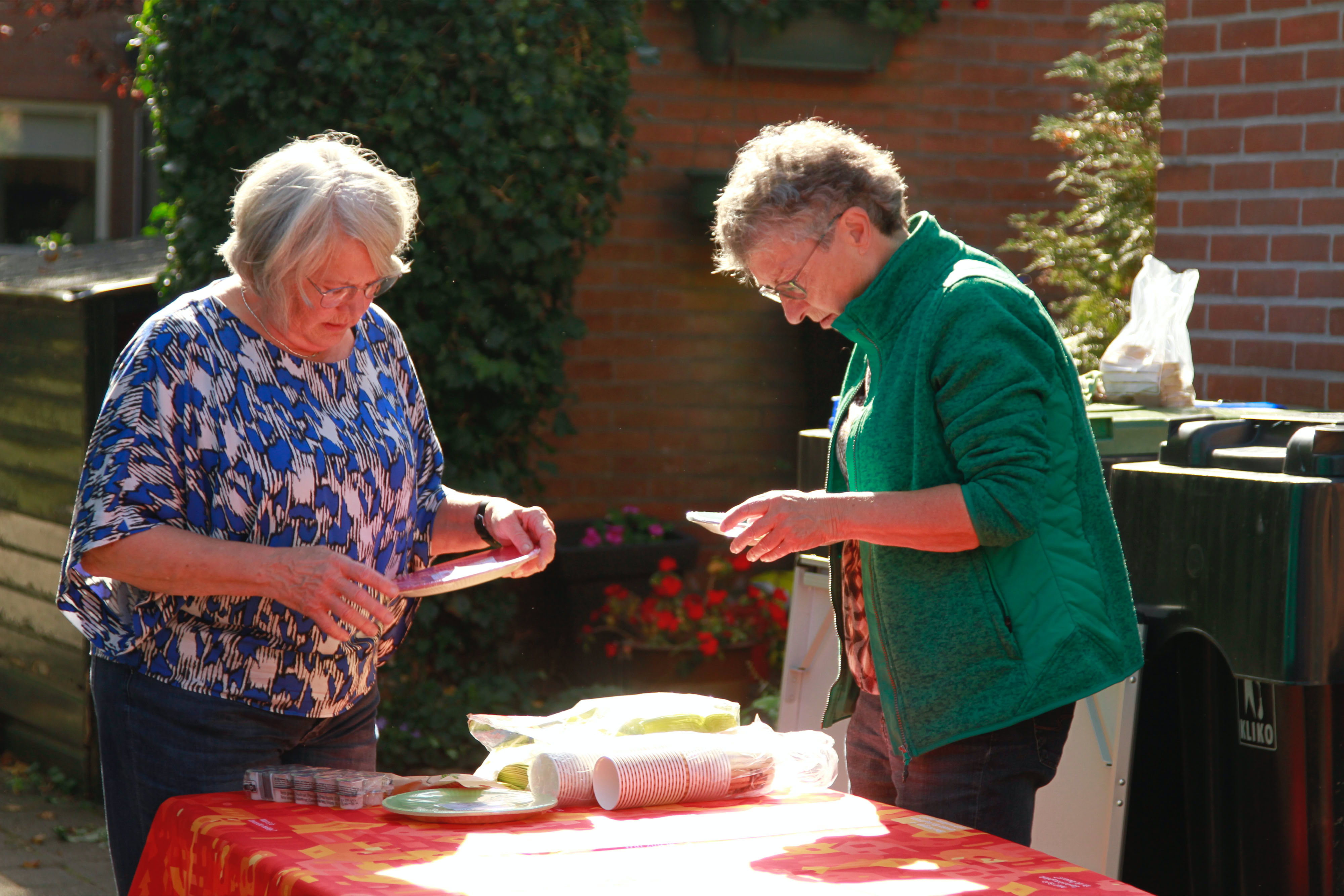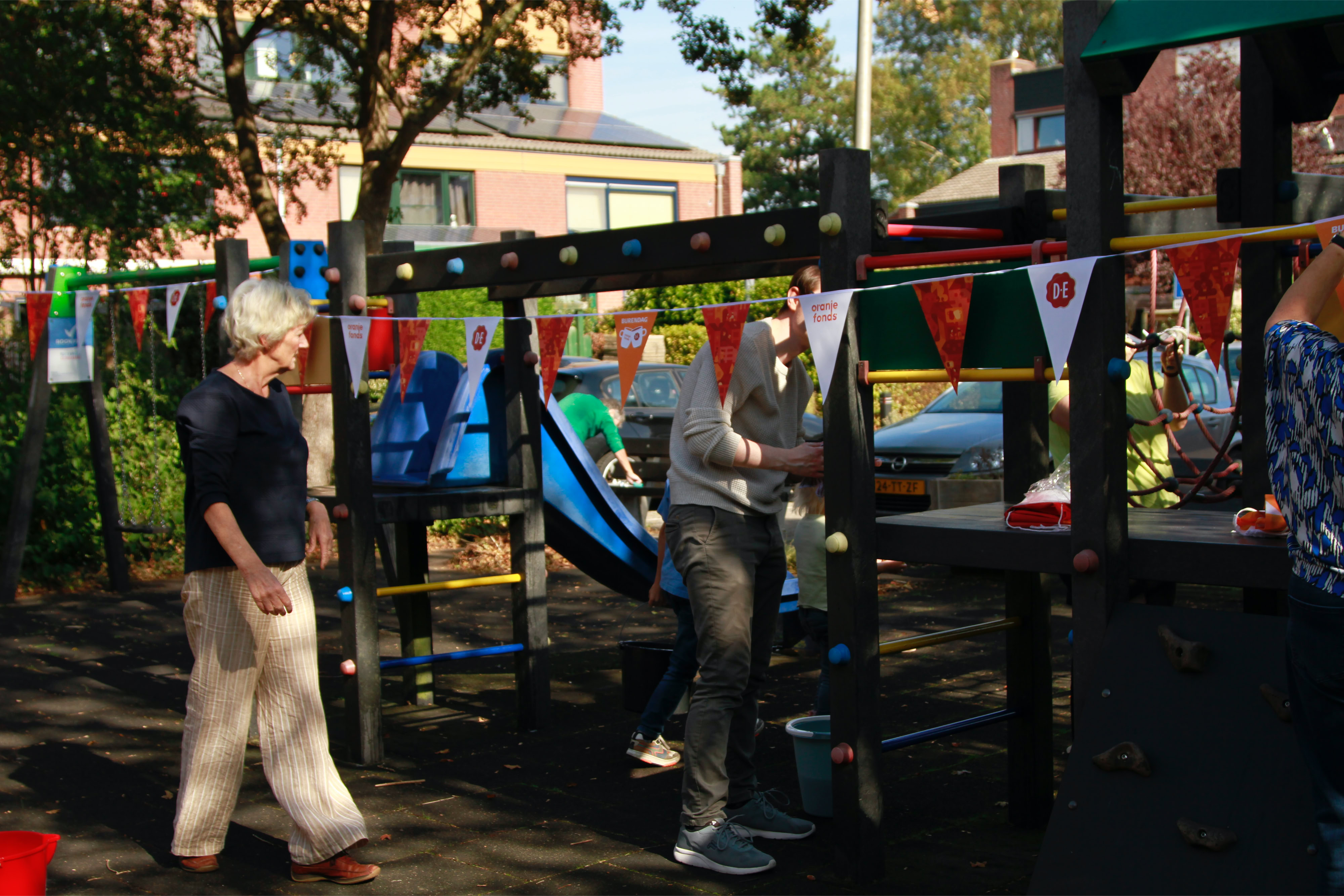 De buurtjes begonnen met het schoonmaken van de speeltuin. Dat gebeurde op een grondige wijze, zelfs de speeltoestellen en de bankjes waar men op kan zitten werden grondig gereinigd en gesopt, de tegels werden schoongemaakt en de eerste herfstbladeren opgeveegd. Ook de kinderen hielpen mee. Daarna was er tijd voor koffie, thee, heerlijke cakes en versnaperingen. Onder een lekkere zonnetje werd er ontspannen geconverseerd, gelachen en anekdotes verteld. Weer een fijn initiatief van de buurtvereniging, waarvoor bedankt!