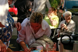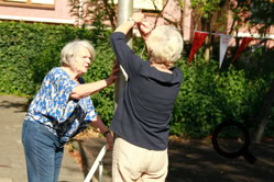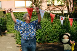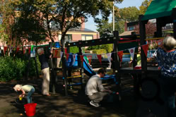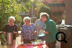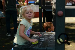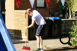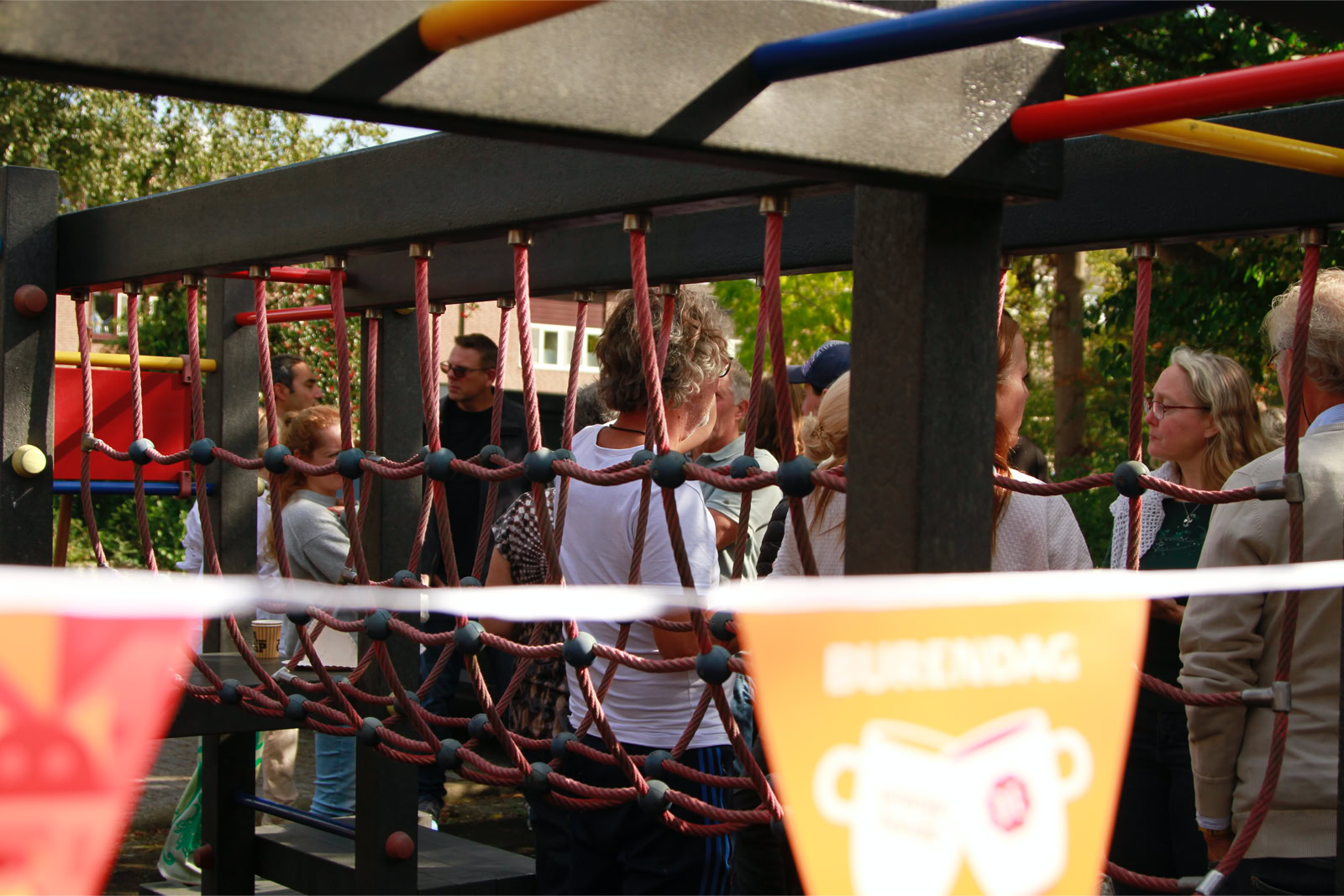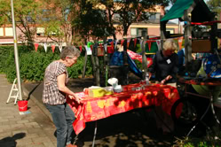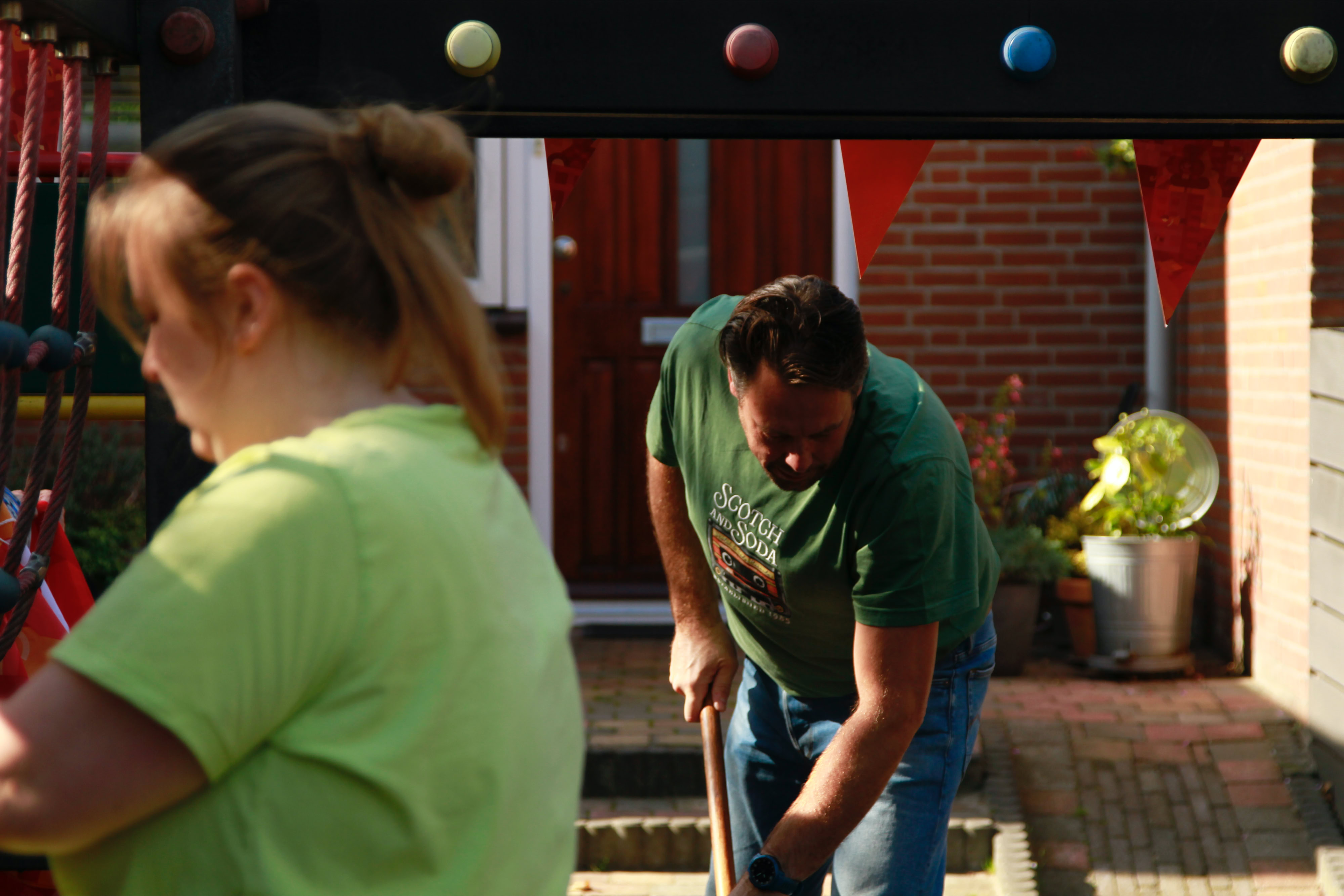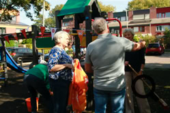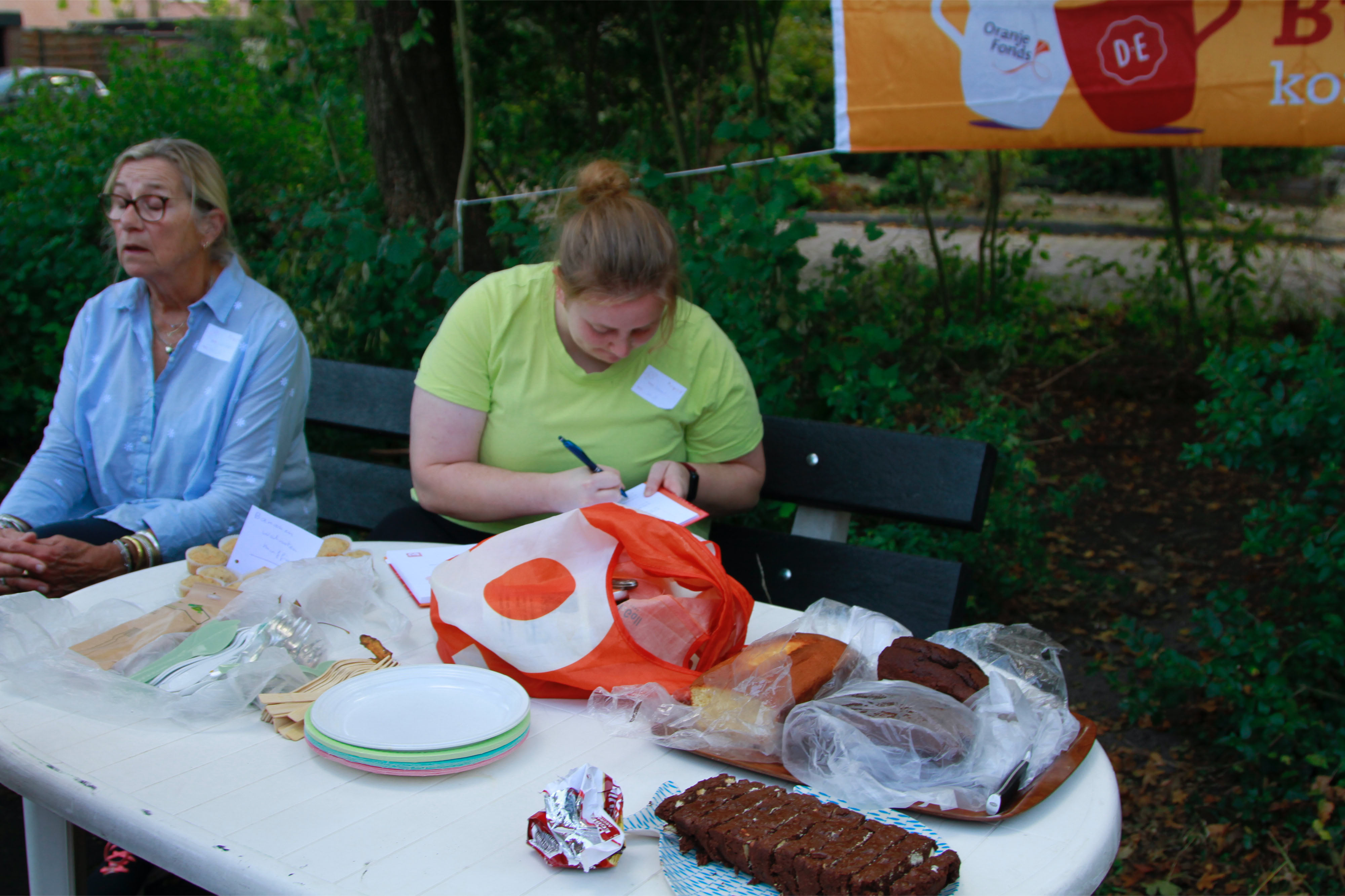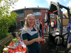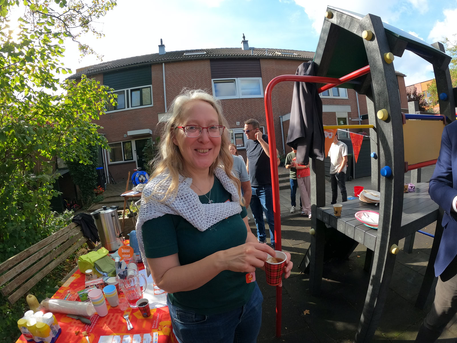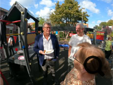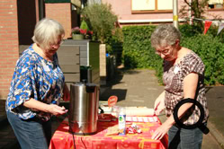 De buurtjes begonnen met het schoonmaken van de speeltuin. Dat gebeurde op een grondige wijze, zelfs de speeltoestellen en de bankjes waar men op kan zitten werden grondig gereinigd en gesopt, de tegels werden schoongemaakt en de eerste herfstbladeren opgeveegd. Ook de kinderen hielpen mee. Daarna was er tijd voor koffie, thee, heerlijke cakes en versnaperingen. Onder een lekkere zonnetje werd er ontspannen geconverseerd, gelachen en anekdotes verteld. Weer een fijn initiatief van de buurtvereniging, waarvoor bedankt!