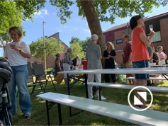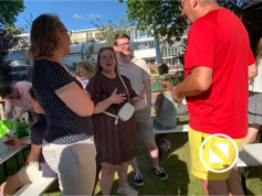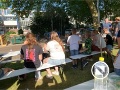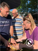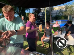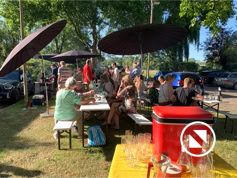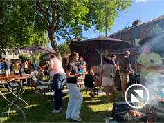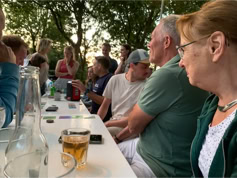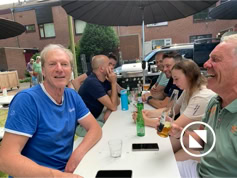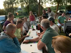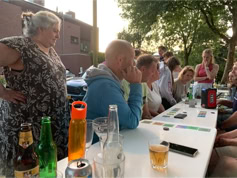 Nadat iedereen met eigen consumpties was gearriveerd kon het samenzijn beginnen. De bbq-vuren werden ontstoken en iedereen liet het zich goed smaken. Tot middernacht konden we heerlijk buiten zijn en werd er gekletst en spelletjes gespeeld. Dit jaar konden we meedoen met Hitster, een leuk muziekprogramma.